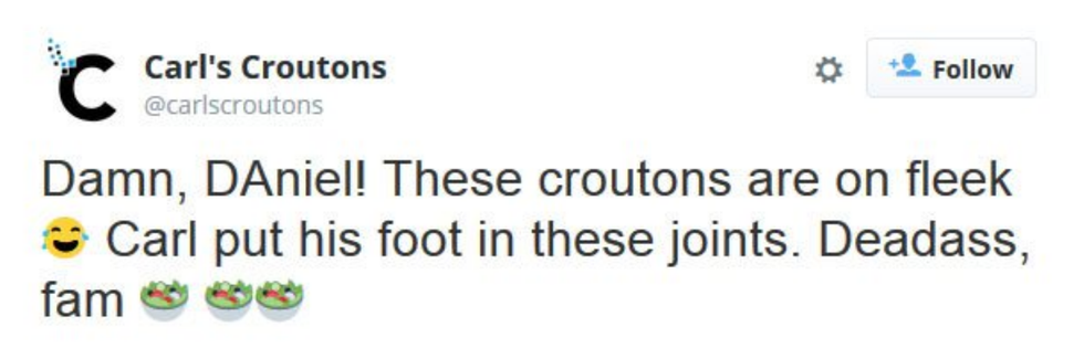 Did the Carl's Croutons account manager get his social media account wires crossed? Possibly. But then we're not sure.